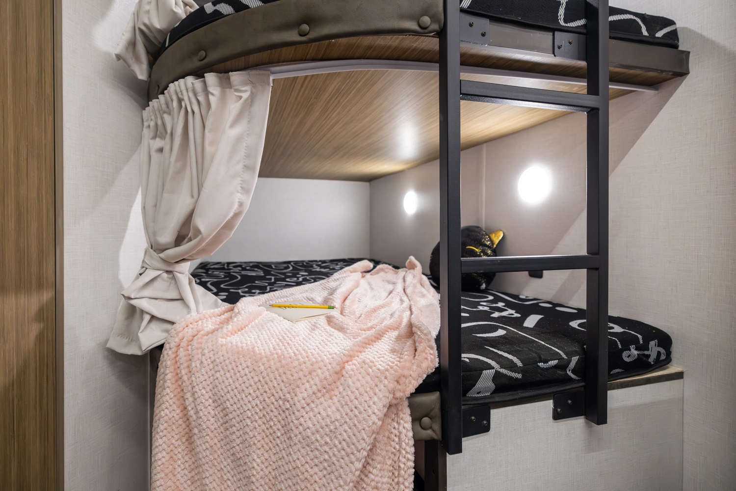 The 240BHXL weighs in at less than 6,000 lbs. for increased towability, without sacrificing any of the comfort! This double-over-double bunkhouse packs a lot of features into its 28'10” length, including a large comfy booth dinette with panoramic windows, walk-in pantry, modern kitchen with stove, cooktop, microwave, and an oversized refrigerator! The bathroom provides a walk-in shower with skylight and a convenient second door to the outside.